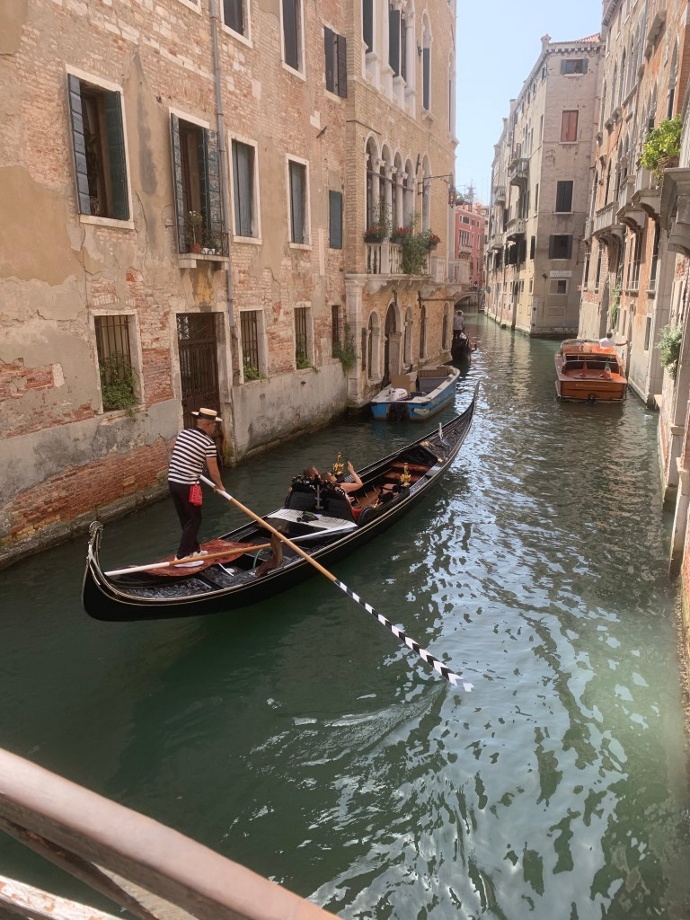 Până să începem turul prin Veneția, ne-am zis să refacem stocul de mâncare. Știam deja cum se ajunge la minimarket, am purces la drum. Până la minimarket ne-am cumpărat înghețată și am intrat în toate magazinele de genți. Doi euro cincizeci două cupe de înghețată. Acceptabil. Nici gentile de piele nu erau scumpe. Scria pe ele “made în Italia”, erau toate reduse la 50% și toate erau vândute de asiatici. Nu știu dacă este o regulă, dar toți vânzătorii de genți de piele pe care i-am întâlnit în Veneția erau asiatici.