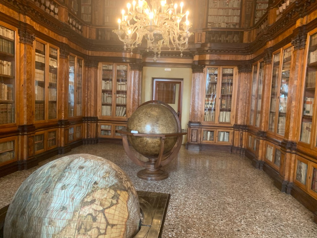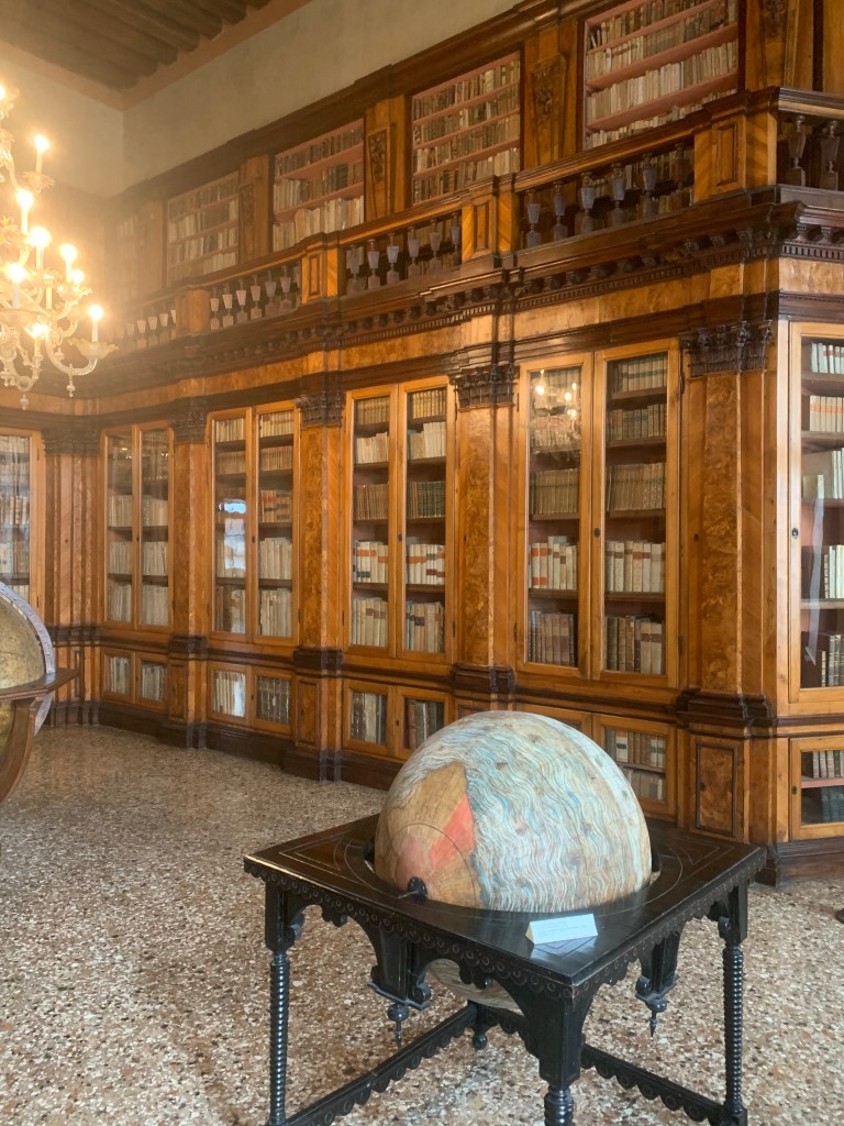 În afară de tavane, în palatul Dogilor am mai admirat și încăperile propriu zise, imense, săli de consiliu, săli de judecată, săli de trecere, o superbă bibliotecă, podul suspinelor, închisoarea. Toată vizita a durat o oră și jumătate, drept pentru care în jurul prânzului ne-am îndreptat către muzeul Correr. De fapt și de drept au fost practic trei vizite, legate între ele. Muzeul Correr comunica cu muzeul de arheologie și din muzeul de arheologie se ajungea direct în bibliotecă. Din partea aceasta a vizitei am reținut mulțimea de globuri pământești existente în bibliotecă, prima hartă à lumii, în care totul era amestecat și statuile expuse în muzeul de arheologie, majoritatea copii ale unor statui grecești.