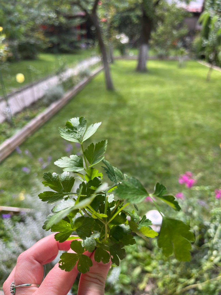 Verdețuri : mentă proaspătă (din grădină), pătrunjel (tot din grădină) și mărar
