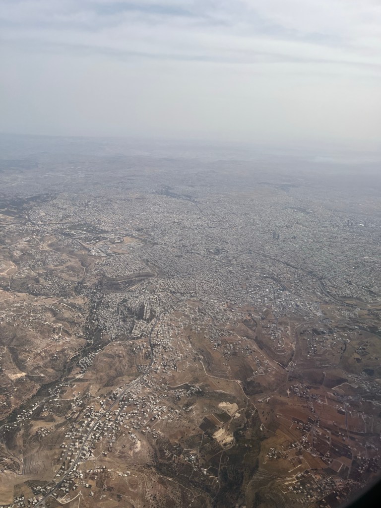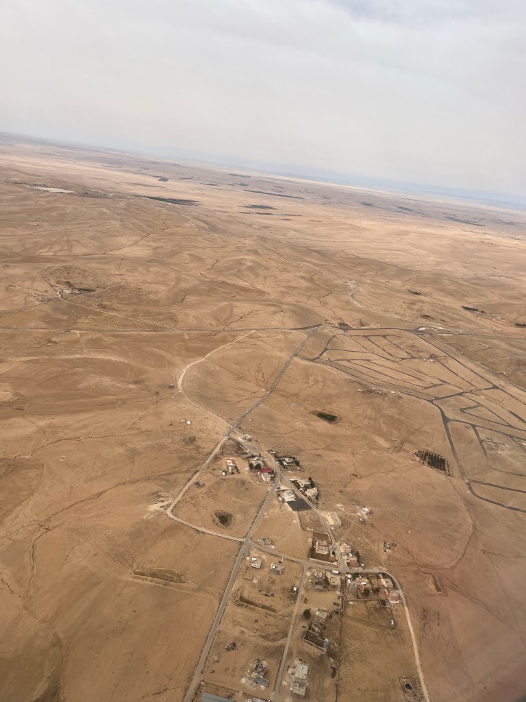 Zborul cu Ryan Air a decurs bine. Câteva mici turbulente, nimic grav. În Amman n-am putut ateriza imediat așa că ne-am rotit puțin deasupra aeroportului. O experiență foarte faina, la distanță mică de sol, cu viteză redusă. Nisip, stânci, pietre, cer, nisip, câteva tufe, panouri solare, pietre, stânci. După ce am aterizat am luat mașina. Partea proastă a fost că noi cerusem un Duster cu cutie manuală și am recuperat în Chevrolet cu cutie automată. Partea buna e că am învățat de ceva vreme să ne adaptam la situațiile neprevăzute.