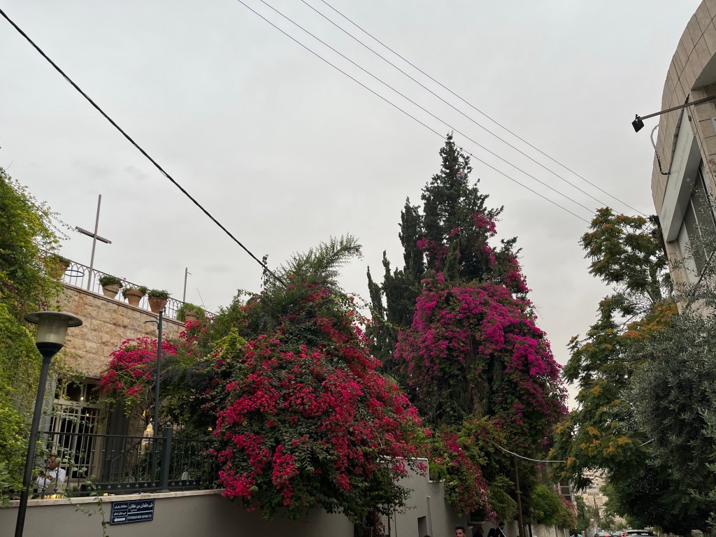 Pe seară am urcat pe Rainbow street, celebra stradă cunoscută pentru restaurantele și magazinele pentru turiști. Ca să ajungem de la piața de lângă moscheea din centrul vechi al Amman-ului pe Rainbow street, a trebuit să urcăm. Și am urcat scări, străzi în pantă, cu mercerii de o parte și de alta, cu gunoaie la tot pasul, străzi acoperite pe porțiuni cu o mâzgă maro, probabil zaț de cafea amestecat cu cine știe ce. Am urcat și am tot urcat până am ajuns la o poartă mare în spatele căreia am descoperit un alt Amman. Un Amman mai curat, cu case albe, maiestuase, înconjurate de grădini cu palmieri și flori multicolore, o stradă cu restaurante scumpe, galerii de artă și terase.