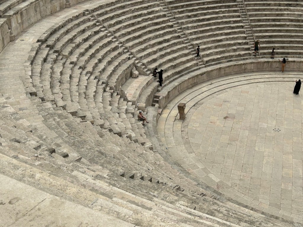 O oră mai încolo am coborât spre centrul vechi al orașului, până la hotelul nostru, din fața teatrului Roman.