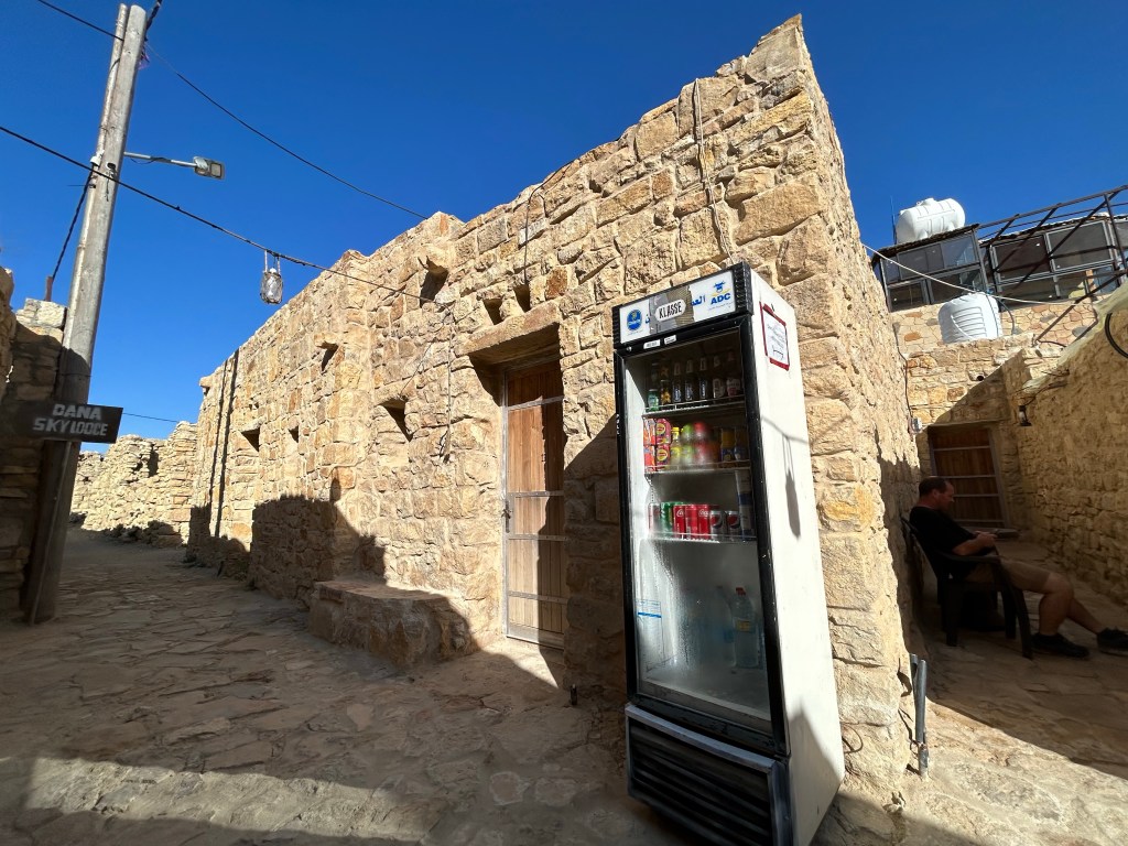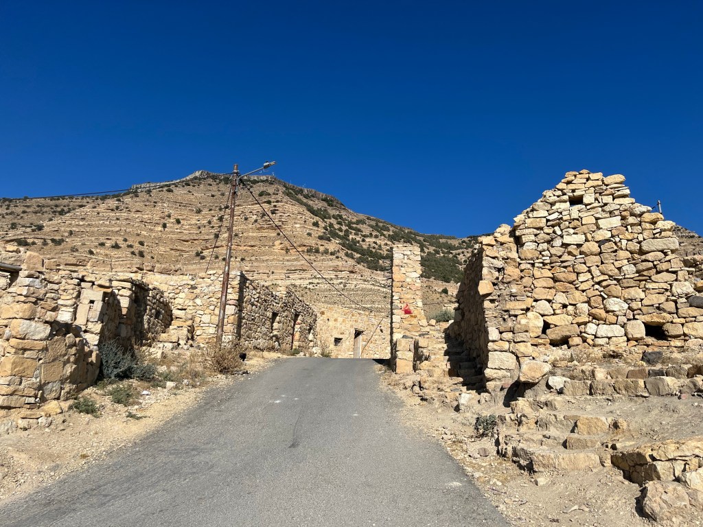 Hotelul era format din câteva camere împrăștiate pe ici, pe colo, construite în vechile case de piatră ale satului. Din ce am citit, majoritatea locuitorilor vechiului sat au hotărât, în trecut, să se mute în Al Qadisiyan, o mică localitate nu foarte departe de sat, dar mai prosperă. Localitate în care, de altfel, ne-am și oprit să mâncăm prânzul, înainte să ajungem în Dana. A fost o experiență inedită acel prânz, servit într-o încăpere care semăna a garaj și care a constat în saorma de pui gătită cu multe mirodenii locale.