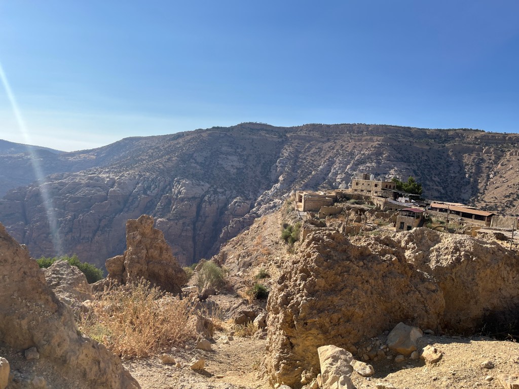 În Dana sat am ajuns în jurul prânzului, pe o căldură care ne-a topit tălpile sandalelor. Hotelul l-am găsit cu greu, după ce am străbătut, practic, tot satul, ascuns pe o străduța îngustă pe care, dacă continuai să mergi, ajungeai la un punct înalt cu vedere spre vale și stânci.