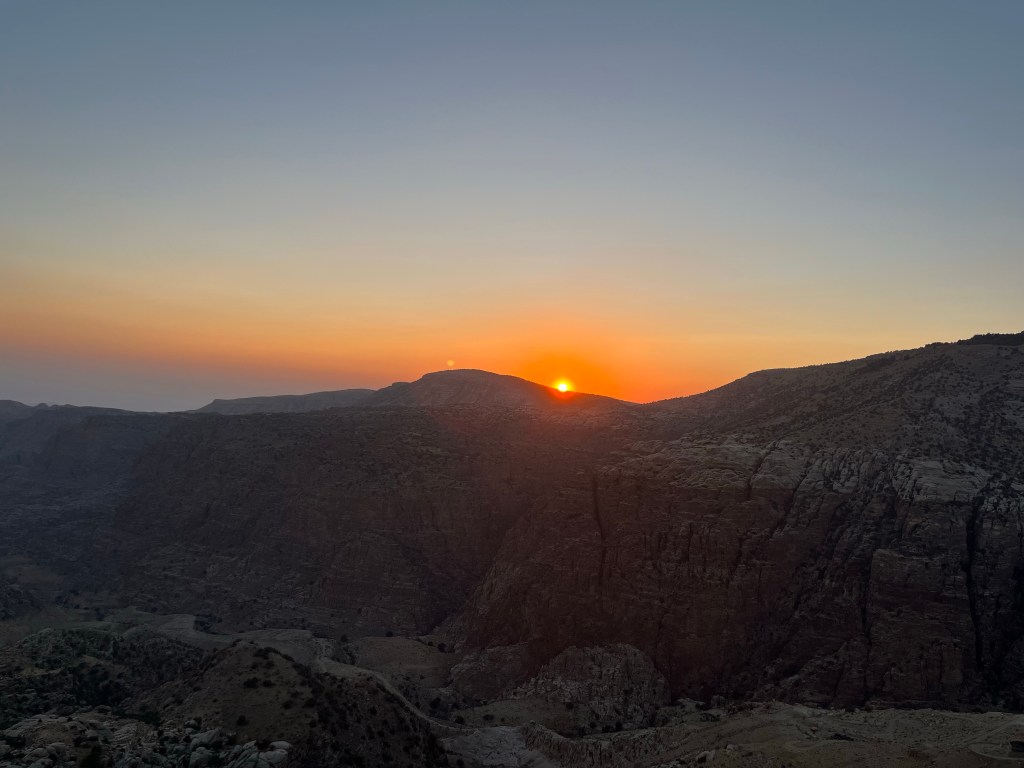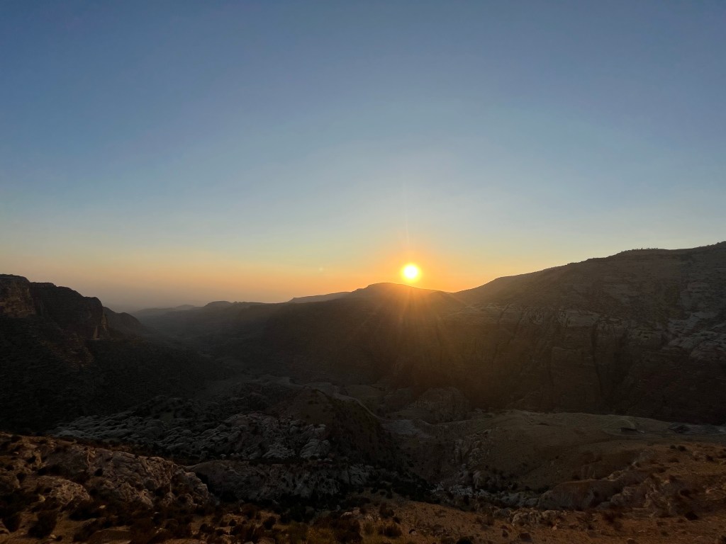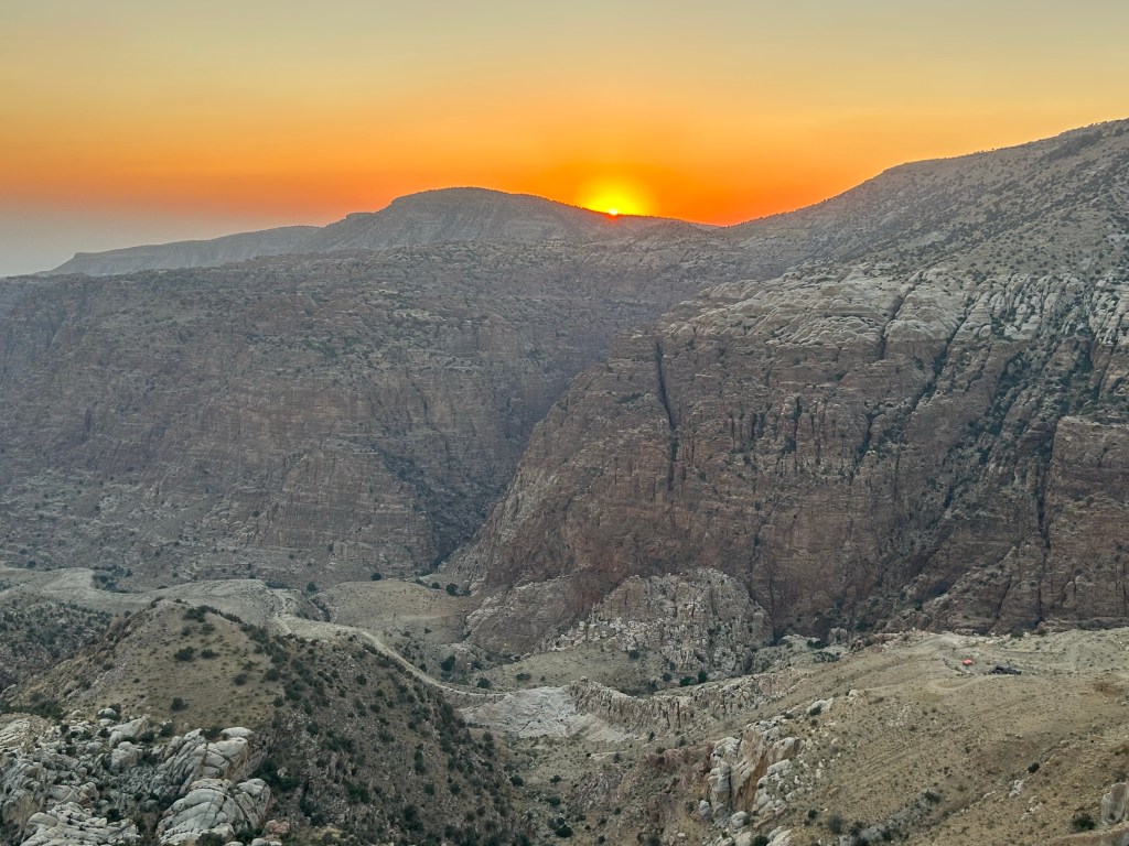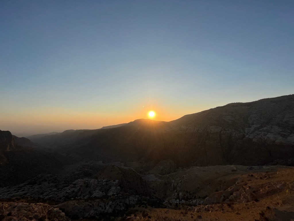 Seara am urcat la punctul de belvedere și am privit soarele cum se stinge printre stânci. Minute întregi l-am privit cum se scurge, în liniște, dincolo de stâncile din zare. În vale s-au aprins câteva lumini și pe cer au început să apară stelele. Când întunericul a învăluit pe de-a întregul satul și Valea, senzația de singuri pe lume a fost și mai pregnanta. Liniștea pe care ne-am fi așteptat să o găsim în deșert, am găsit-o, într-un final, în acel sat uitat de lume, în care, cei câțiva locuitori pe care i-am întâlnit, ne-au întrebat de unde suntem și, după ce le-am răspuns de unde, au bătut din palme și ne-au urat bun venit în Iordania.