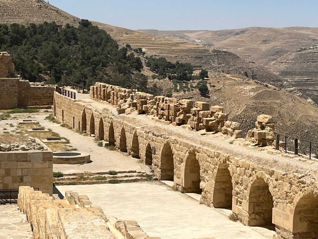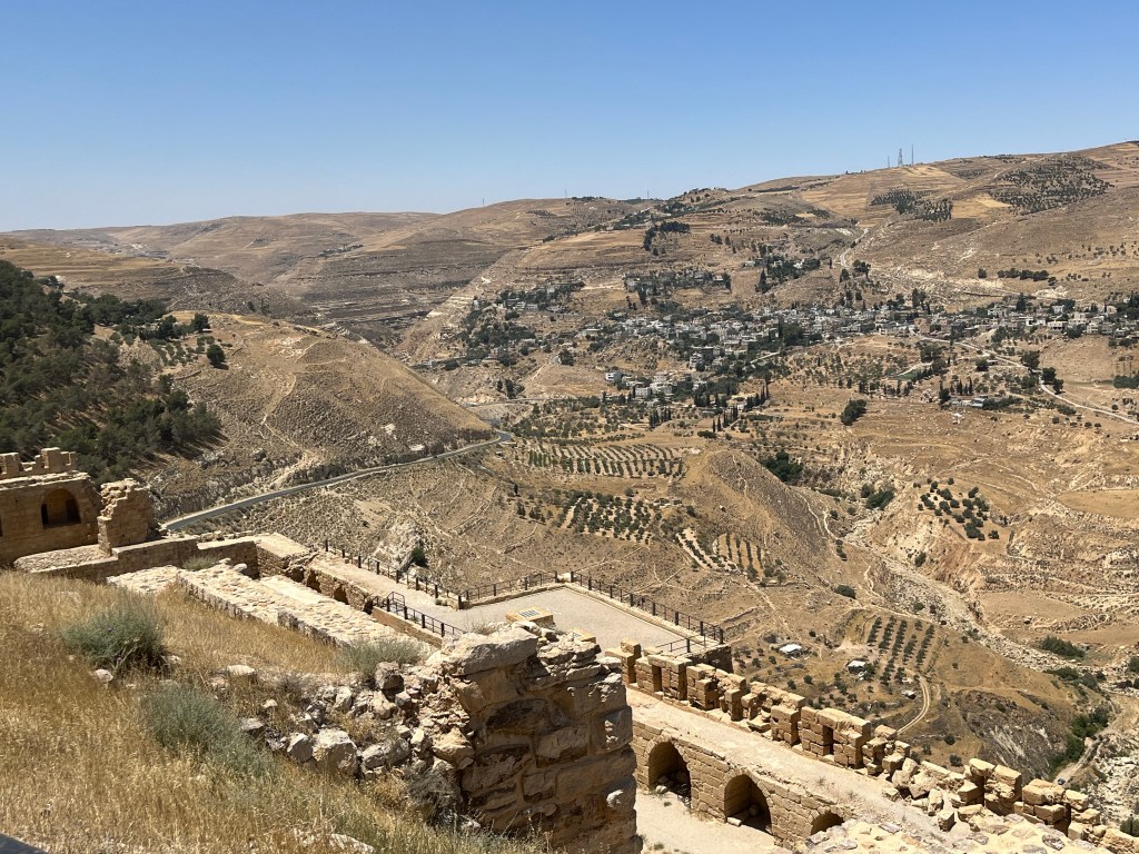 À doua zi de dimineață, după un mic dejun copios servit pe străduța îngustă ce ducea la belvedere, ne-am luat rămas bun de la Dana și am plecat spre Amman. În drum an vizitat castelul Kerak, unul dintre cele mai mari castele medievale din zonă. Nu s-au păstrat decât zidurile, labirinturile interioare și exteriorul, scările și curțile interioare. Fiind atât de mare, vizitarea lui ne-a luat cam o oră. Parcarea a costat 3 jod dar ar fi putut fi gratuită dacă am fi luat prânzul la restaurantul de lângă parcare.