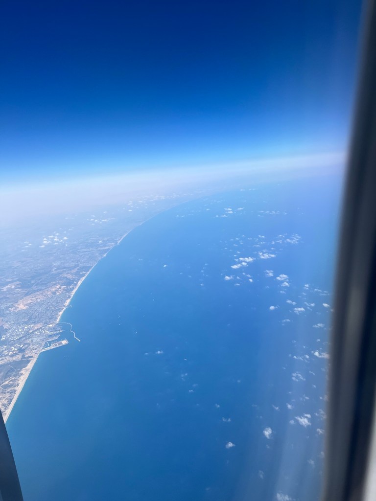 Zborul de întoarcere a fost de vis, fără turbulente, fără nori, fără incidente. Am zburat peste mări (marea Moartă, Marea Mediterana, Marea Neagră) și țări (Iordania, Israel, Turcia, Bulgaria, România) și, după aproape trei ore, am aterizat la București.
