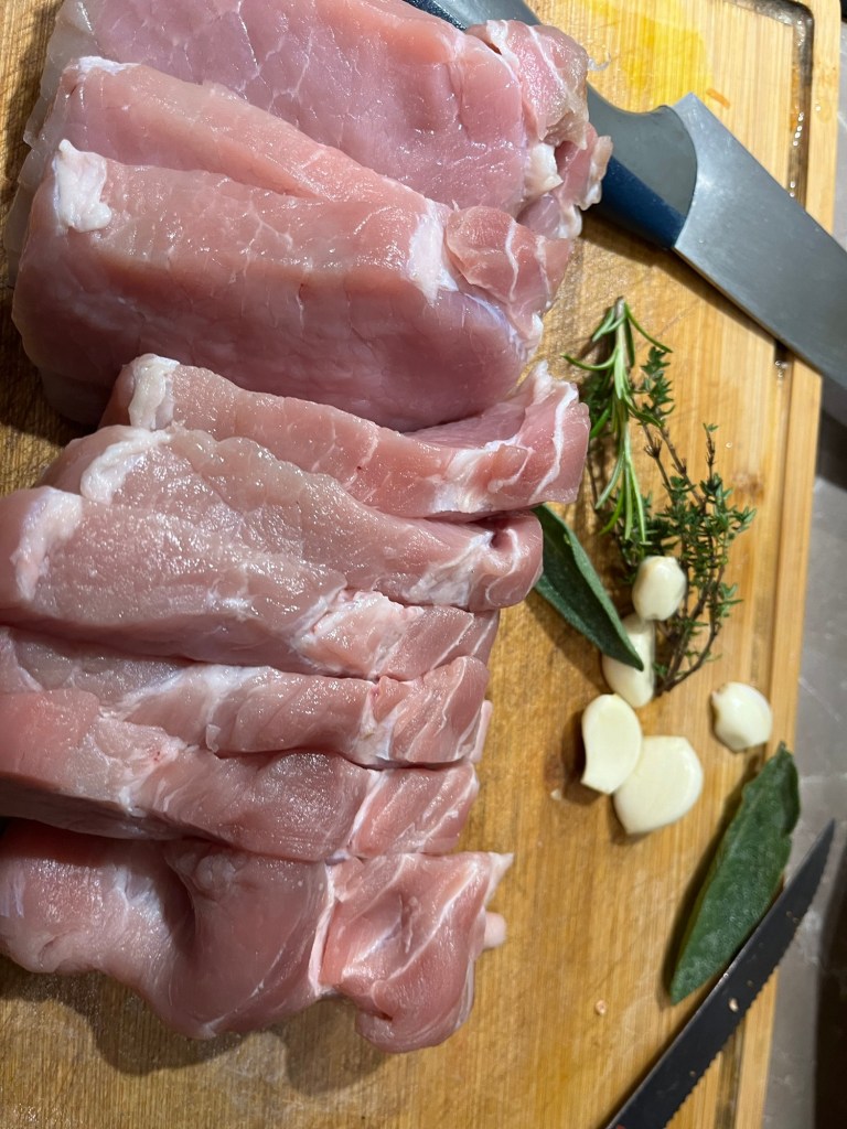 Improvizația pe care doresc să o împărtășesc azi se numește cotlet de porc cu sos roșu și măsline acompaniat de cartofi gătiți ca la Dana acasă.