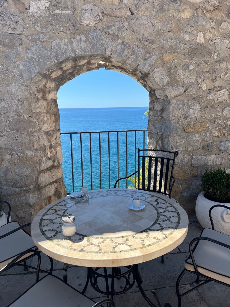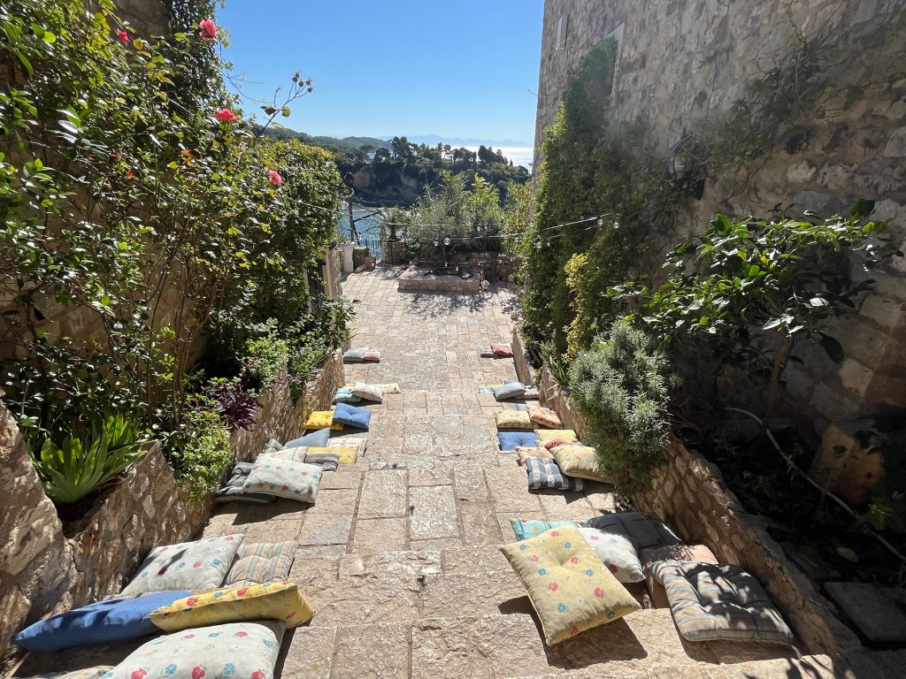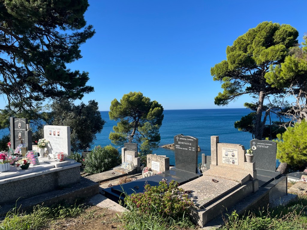 Clădirile sunt vechi dar restaurate recent. E greu de expus în cuvinte senzația de calm pe care mi-a inspirat-o vechea cetate. Muzeul etnologic, cimitirul de pe malul mării, micile terase cu vedere la albastrul infinit al Adriaticii, gelateria de la ieșirea din cetate, scara cu perne, statuia lui Cervantes, florile mov de hârtie, apa turcoaz văzută de sus, biserica de lângă cimitirul de pe malul mării, cu grădinile ei colorate și barul cu snacks-uri și Pepsi, treptele lucioase, cărora nici măcar tălpile antiderapante nu le fac față.